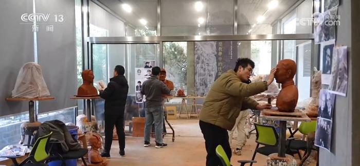 在南京艺术学院雕塑系的工作室里,学生们在老师的指导下,正在进行雕塑《最后的幸存者》的创作。这组雕塑由群雕与单人肖像共同构成。师生们通过收集幸存者的口述和影像资料,将幸存者的亲身经历融入到雕塑创作中。整组雕塑计划在2026年完成。